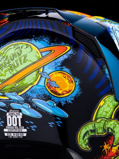 El casco Airflite Bugoid Blitz tiene la certificación ECE22.06, lo que hace que la duradera carcasa de policarbonato moldeado por inyección sea tan resistente como el exoesqueleto de un insecto. El Forceshield antivaho y el DropShield interno te brindan una visión clara de la batalla (y de la calle) con cualquier tipo de iluminación.