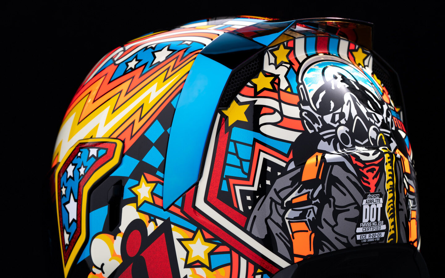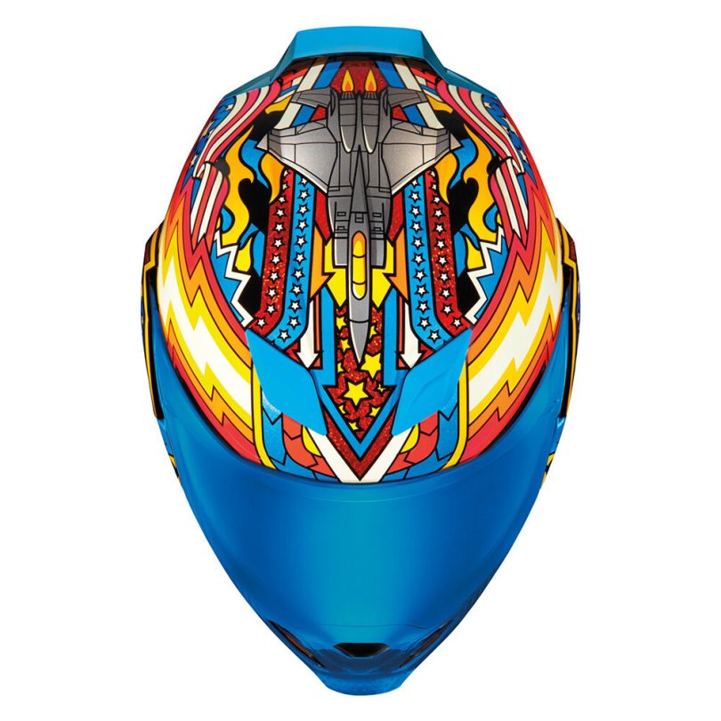 El casco Airflite Flyboy™ es una interpretación artística de nuestros sueños Mach 1. El Fliteshield™ transparente Fog-Free y el RST Blue Fog-Free Forceshield™ desplegable interno te permiten volar (o montar) día y noche. La certificación ECE22.06 será tu compañero.