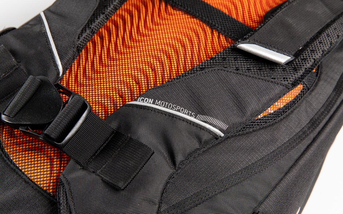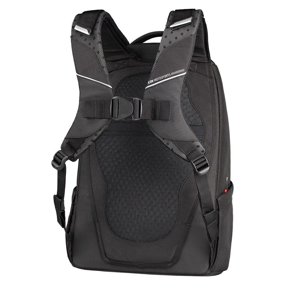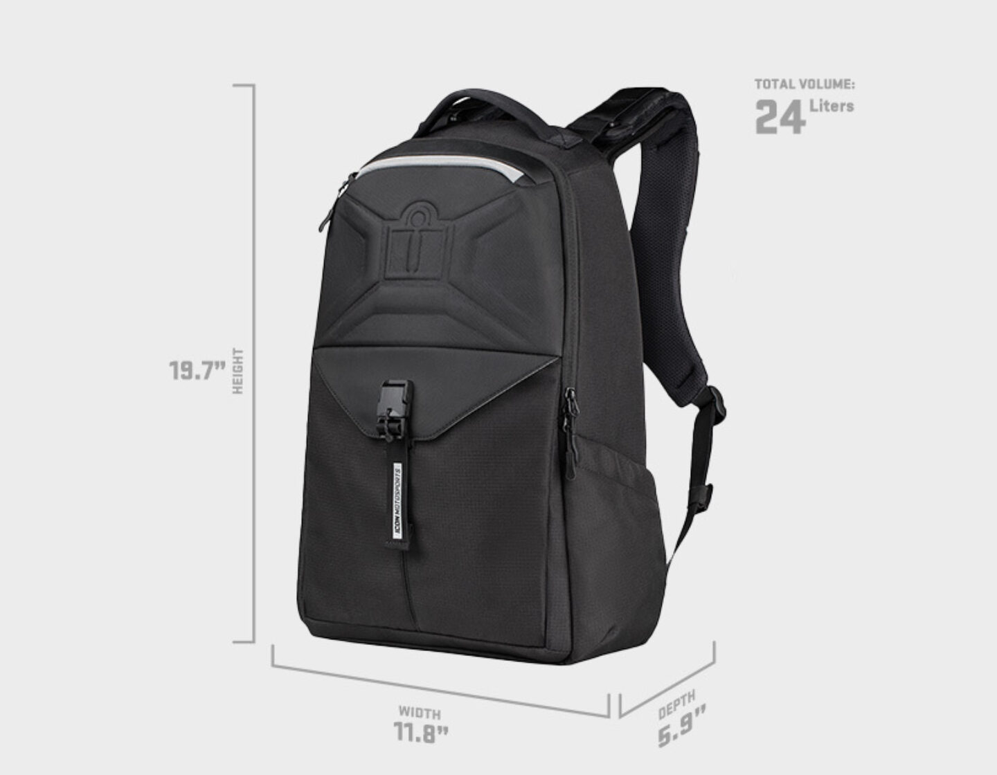 Capacidad de 24 litros, correas estilo arnés, compartimento principal moldeado, bolsillos delanteros magnéticos, bolsillo disponible para agregar una pequeña mochila D3O Viper no original, bolsillo para gafas de sol, funda acolchada para computadora portátil, gancho para casco, bolsillo para botella de agua, detalles reflectantes