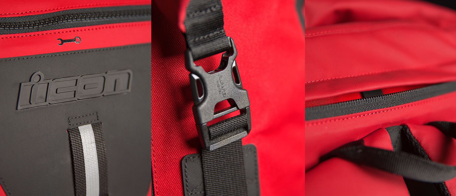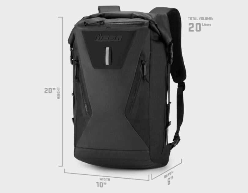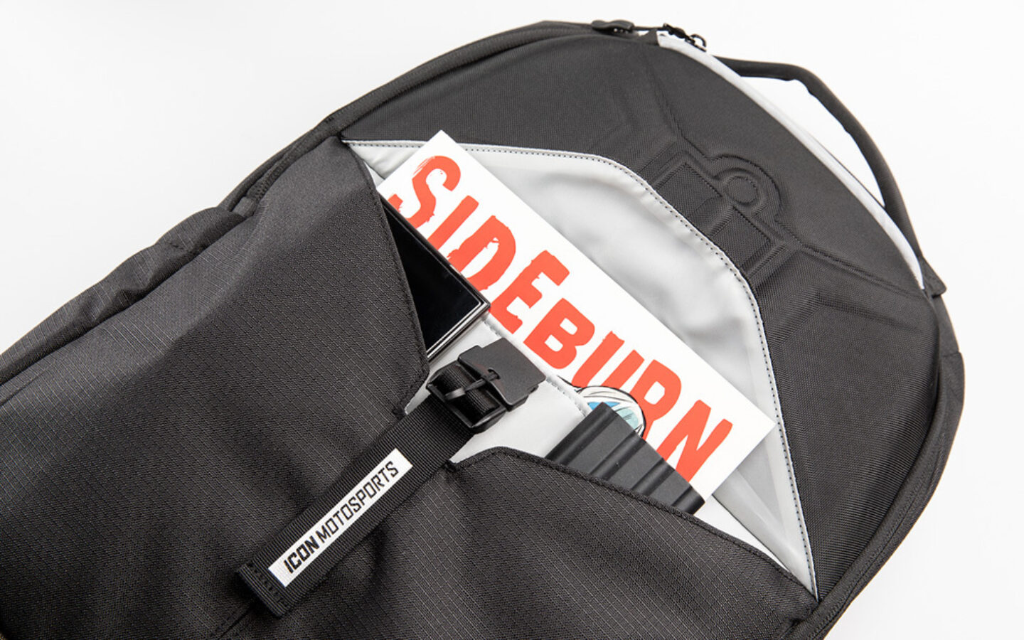 Capacidad de 24 litros, correas estilo arnés, compartimento principal moldeado, bolsillos delanteros magnéticos, bolsillo disponible para agregar una pequeña mochila D3O Viper no original, bolsillo para gafas de sol, funda acolchada para computadora portátil, gancho para casco, bolsillo para botella de agua, detalles reflectantes